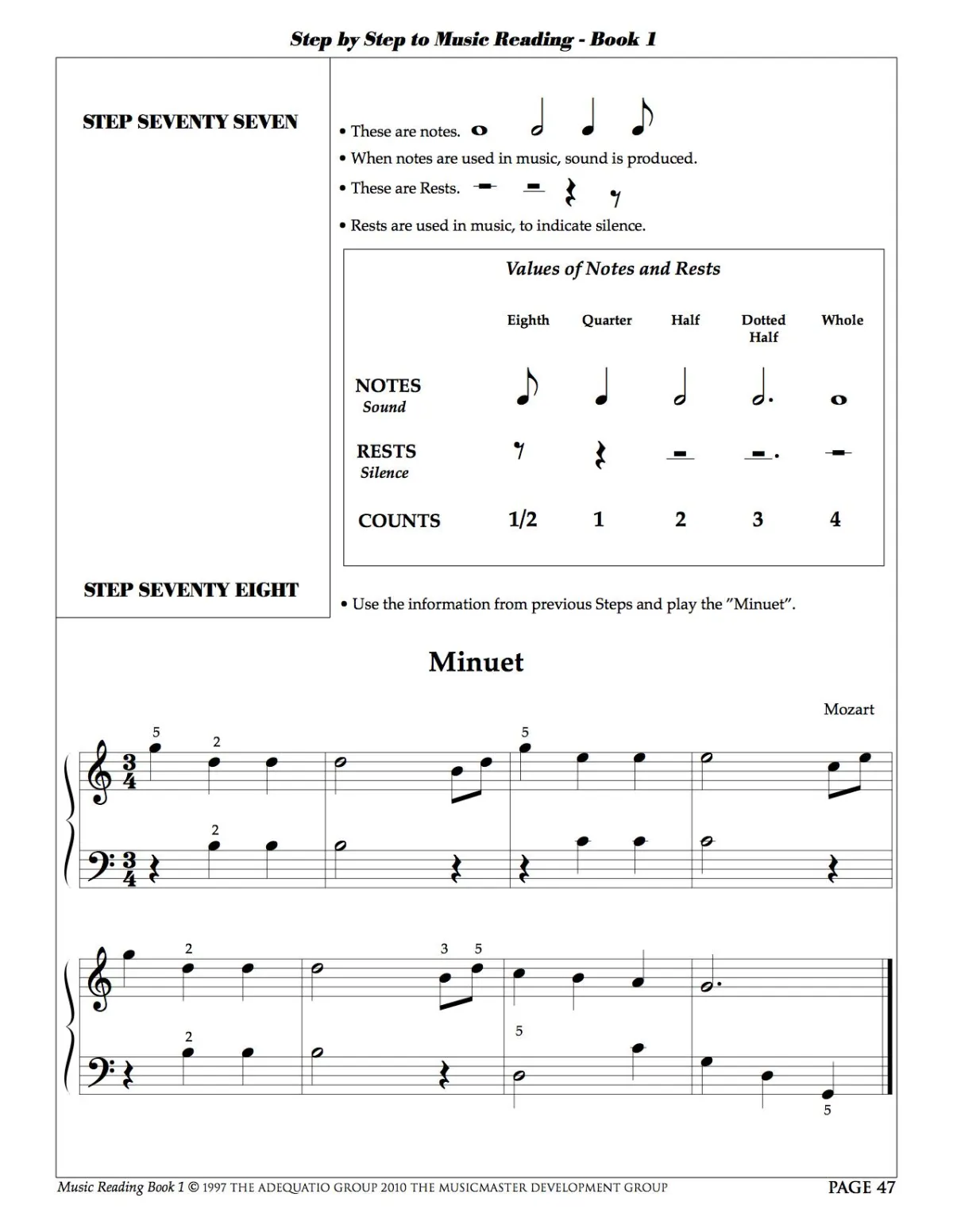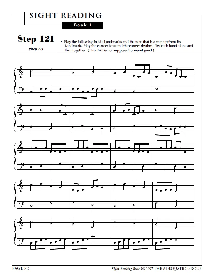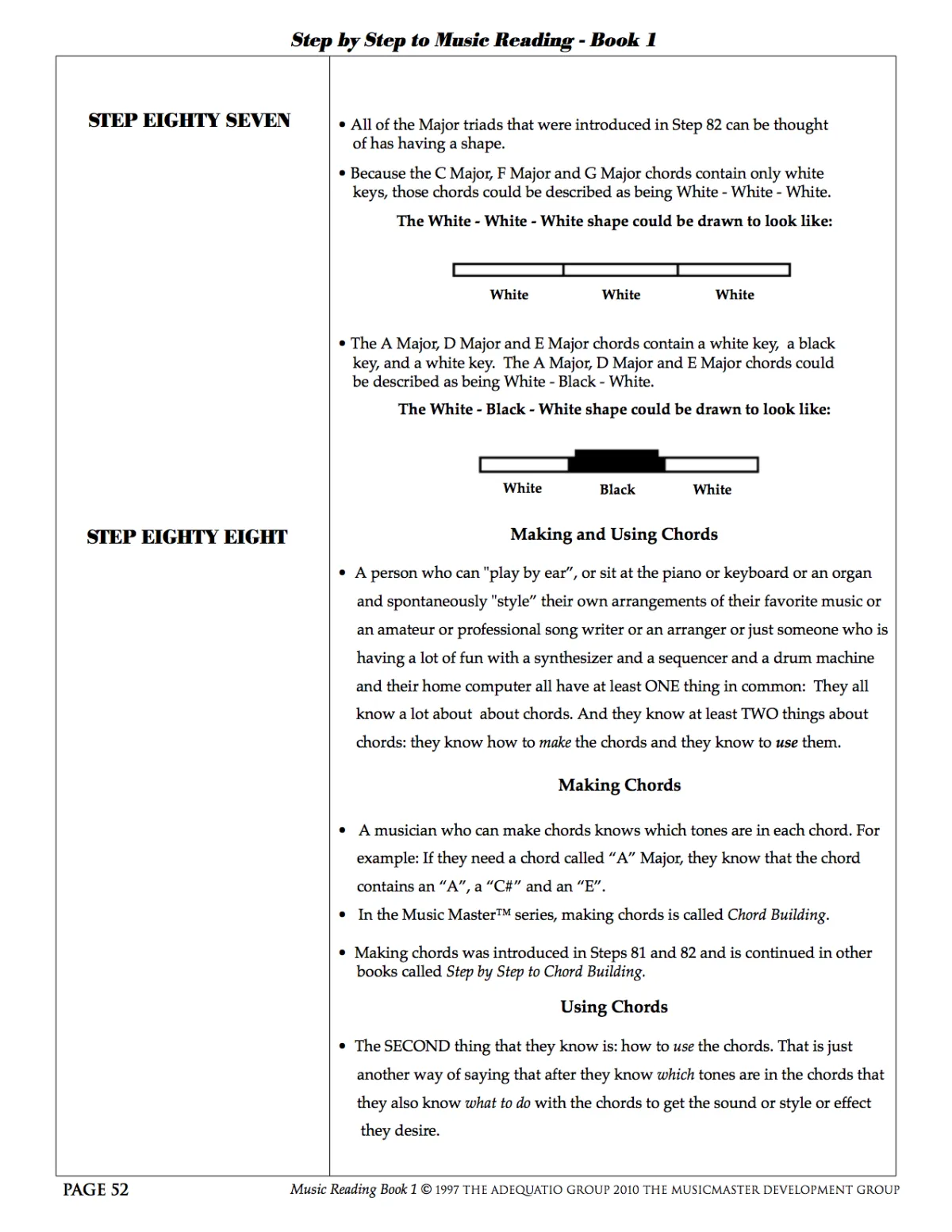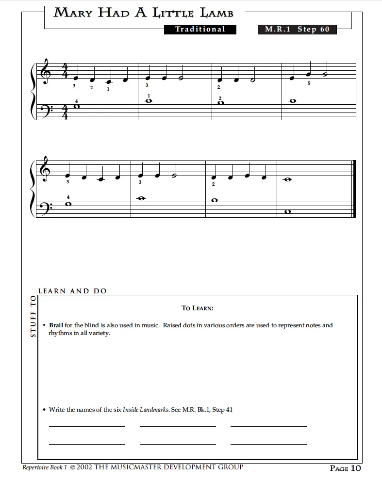 Contains a very smooth, easy approach to reading and playing music in the Grand Staff. Eliminates the possibility of only reading finger numbers. Eliminates fear of keyboard and staff as the players move away from Middle C.