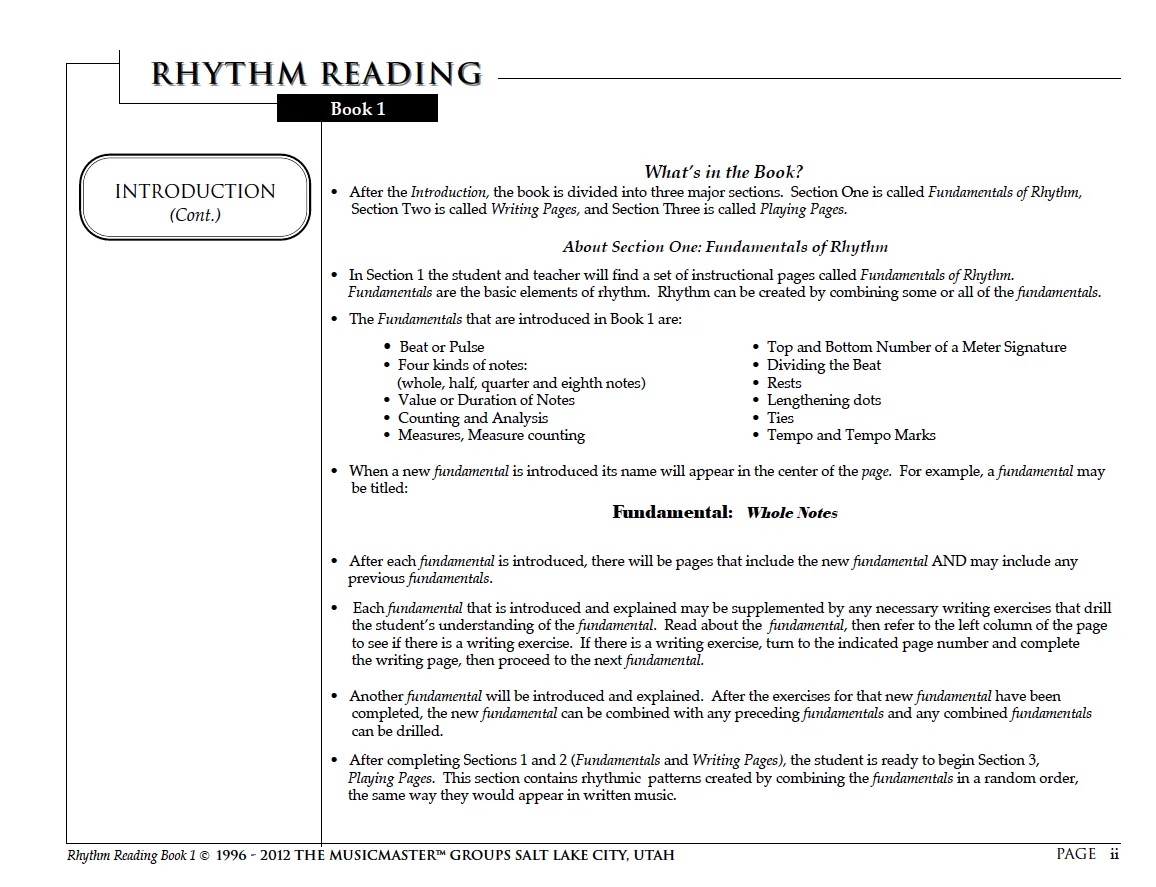 Used after Music Reading Book 1 or Book 1-B In addition to providing music to play, it continues with the skills and concepts introduced in Music Reading Book 1.